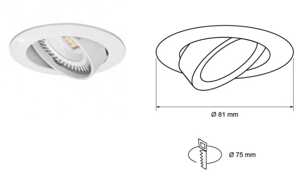 - adâncime 25mm, împreună cu spotul led ajunge să ocupe o adâncime de 60-65mm